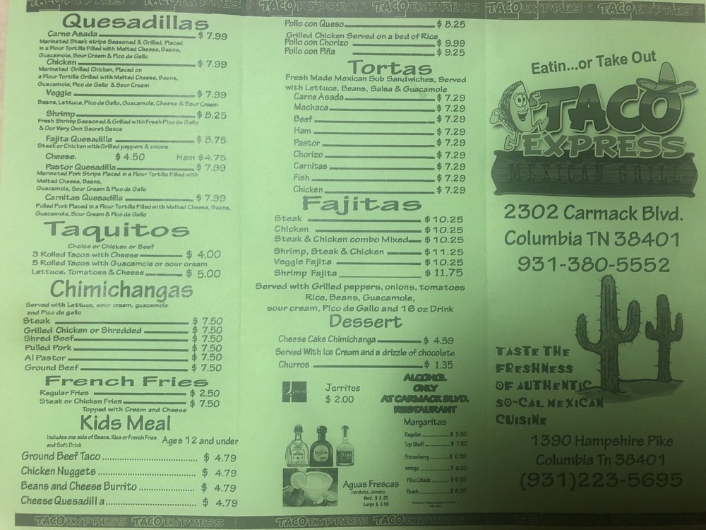Welcome to Taco Express Mexican Grill, your cozy destination for authentic Mexican cuisine on Carmack Blvd, Columbia, TN. This delightful eatery is well-loved for its friendly atmosphere and exceptional service, making it a perfect stop for families and friends alike.